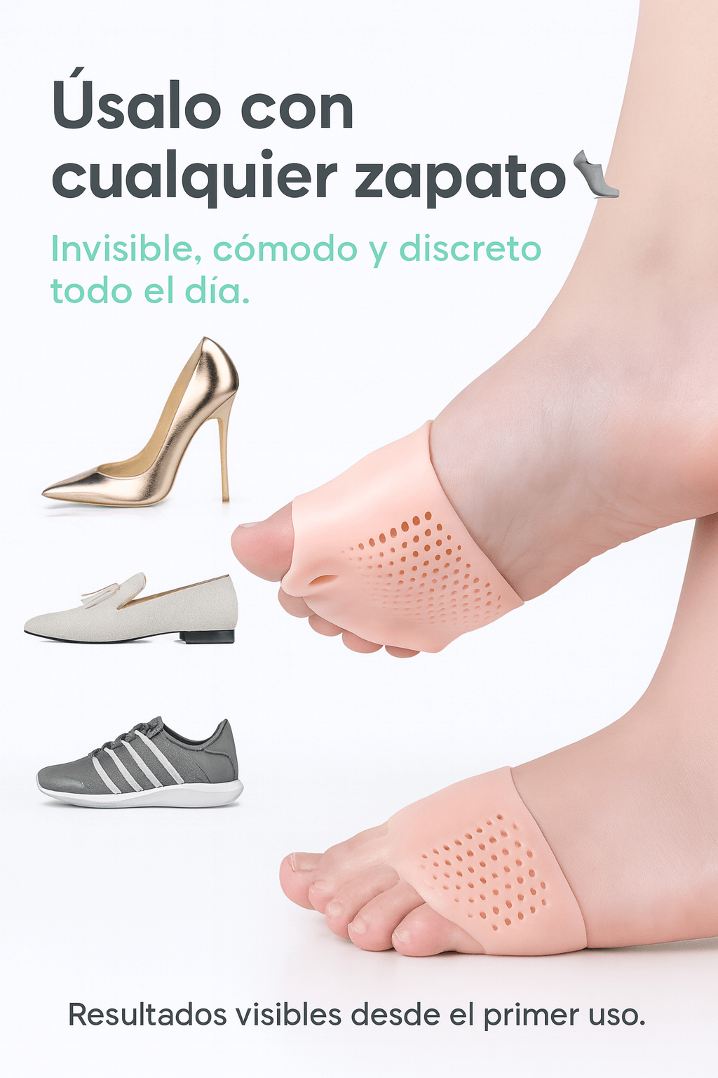 Úsalo 20–60 min al principio y aumenta según comodidad. Se puede llevar con zapatos.